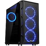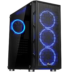 OPTIMIZED AIRFLOW: Keep your system temperatures low and components cool with front mesh panels that promote case ventilation and great airflow BUILDER-FRIENDLY LAYOUT: Experience quick and easy building for first-timers, pro PC gamers and seasoned DIYers alike with a simple, straightforward internal case layout EXCELLENT CABLE MANAGEMENT: Tuck away HDD/SSD and power supply cables within the PSU shroud and display your PC case with clean cable management, plus increased air circulation DUAL RING LED FANS: This midtower gaming computer case includes 4 stylish pre-installed 120mm dual ring blue LED fans (3 in front, 1 in rear) and supports up to 6 x 120mm fans TEMPERED GLASS: Show off your new PC build internals through the tempered glass side panel window, featuring a subtle tint that seamlessly blends with the rest of the black steel computer case