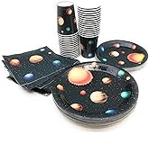 - Throw an unforgettable space-themed celebration with the Oojami Outer Space Birthday Party Pack. This all-in-one set includes 9" dinner plates, 7" dessert plates, 9 oz cups, and 3-ply napkins, all featuring a stunning galaxy-inspired design. Perfect for kids' birthdays, classroom events, and themed parties, these disposable tableware pieces make cleanup easy while ensuring a vibrant and exciting setup. Made from durable paper materials, this set is designed for convenience without sacrificing style. Outer space party supplies Galaxy theme birthday decorations Kids space birthday tableware Disposable outer space plates and cups Astronaut party essentials