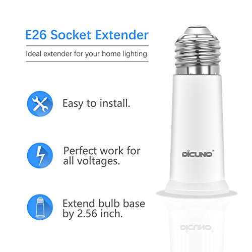 DiCUNO E26 Socket Extender, E26 Medium Screw Base, Light Socket Extender by 2.56 Inch Extension, Bulb Base Extension Adapter, Max 200W, 2-Pack