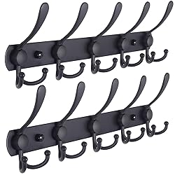 - Dseap Modern Heavy Duty Wall Mounted Coat Rack with 5 Triple Hooks Material: stainless steel and aluminium alloy. Finish: Black Dimensions: Total: 41 x 13 x 5 cm (L x W x H) Distance between mounting holes: 26.5 cm Includes: 2 x Dseap Heavy Duty Wall Hooks with 5 Triple Hooks Fasteners Uses: For hanging towels, coats, hats, keys, scarves or even handbags, the Dseap wall hook offers practical and space-saving storage for the home. Both functional and elegant, it will add a touch of style to any room: bathroom, bedroom, living room, dressing room, kitchen, entryway, etc.