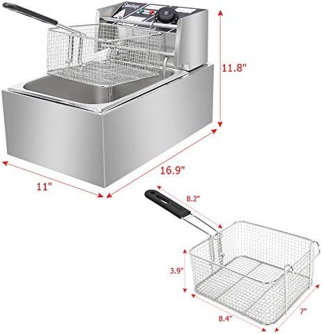 ZOKOP Electric Deep Fryer Stainless Steel with Basket Strainer Filter, 6.3QT/6L Capacity, for Home & Commercial Use, Countertop Kitchen Fryer for Turkey, French Fries, Donuts, 2.5KW 60Hz 110V