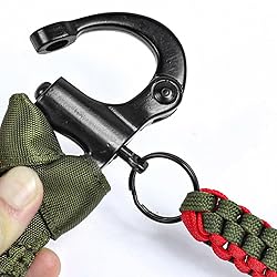 Net Weight: 150g Size: 55cm, Maximum Pull: about 600 KG. Material: The main material is nylon webbing and elastic rubber; the buckle is made of steel metal buckle. Features: It has a colored drawstring at the steel buckle, just pull the drawstring gently to release it quickly. The buckle itself has a spring inside that can be quickly reset. Usage: Perfect for Airsoft game, Cosplay, Hunting, Shooting, Outdoor Sports, Mountaineering and other activities to increase safety.
