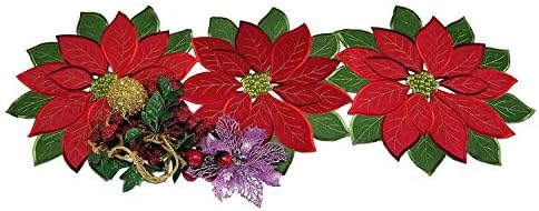 Holiday Christmas Applique Poinsettia Red Green Embroidered Christmas Flower Table Runner for Home Dinner Xmas Table Top Decorations,14"×36?(36×90cm)