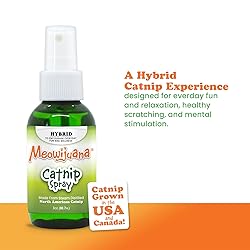 GREAT FOR TRAINING: Cat tearing up your couch? Spray on a scratcher to make it instantly more interesting to your cat than your old loveseat; Also a great way to make new cat beds feel like home! NON-ADDICTIVE: Meowijuana is a non-addictive catnip; There are no added ingredients that are harmful for your pet SAFE AND HEALTHY: Play is a vital activity to relieve anxiety and boredom and maintain a healthy weight in cats; Our pure, strong catnip safely stimulates cats young and old, long may they reign CONVENIENT AND EASY TO USE: Just a spritz or two on your cat's favorite toys or scratchers will have them going CRAZY; Works great on toys your kitty cat has lost interest in; No clean up necessary!
