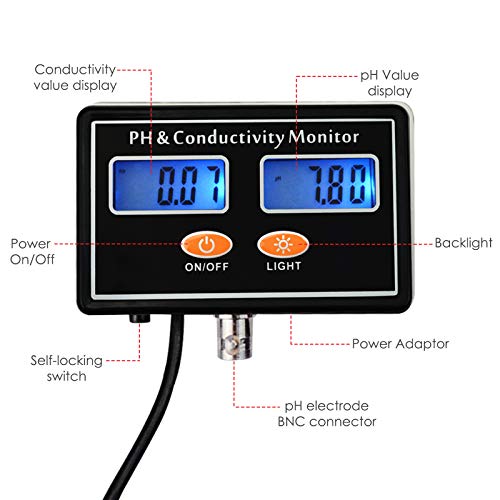- Medidor 2 en 1 de pH y Conductividad EC con ATC, rango de medición 0.00-14.00pH / 0-19.99mS/cm