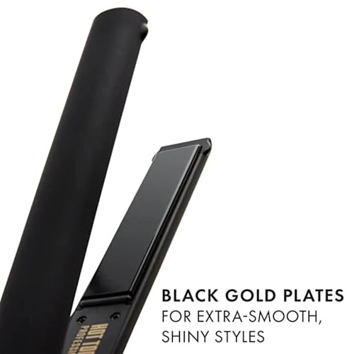 HOT TOOLS Pro Artist Black Gold Ionic 1 Inch Flat Iron - Use as Straightener for Sleek Straight Hair or Use Rounded Edges for Shiny Curls and Waves, Stylist-Preferred Styles