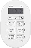 myTouchSmart Simple Set 7-Day Digital Timer, 2 Grounded Outlet Timer, Sunrise-Sunset Indoor Timer Outlet, Programmable ON/OFF Plug Timer, 125V Light Timer, Lamp Timer, Seasonal Lights, White, 35150