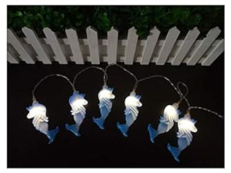 - Seahorse color: Blue Light color: Warm white Seahorse size: width: 1.4inch (3.6 cm) height: 3.54inch (9cm) Light total length: 64.9 inch (165cm) Lamp distance: 5.9 inch (15cm) Material: Plastic and PVC Battery power: 2 X AA batteries (not included) Package: 4 Blue Seahorse string light 165cm/ 5.4ft, Battery operated. 10 bright LED, 3V battery power, low power consumption Made of high quality material, durable for daily use, Saving power and environmental protection Great for decorating everywhere, Romantic decorative, Suitable for Christmas wedding, party, square, garden, table, indoor. Note: please keep battery dry to extend lifespan.