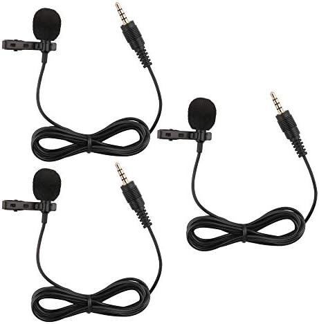 Tiny Microphone, 59 inch Wired Lavalier Lapel Microphone, 3 Pack 3.5mm Portable Clip on Omnidirectional Mic Condenser for Recording Podcast PC Laptop Android iPhone YouTube Interview ASMR