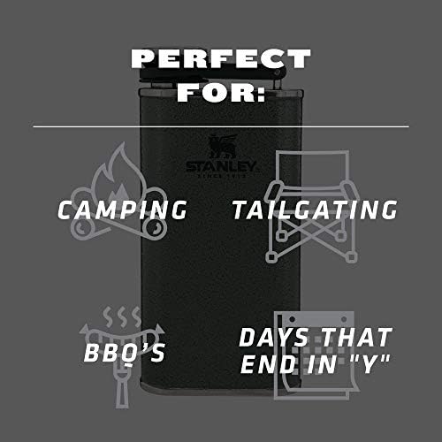 Stanley Clásico Fácil de Llenar Botella de Acero Inoxidable de Boca Ancha 8 oz | Botella de Whisky a Prueba de Fugas | Tapa Conectada con Bisagra Nunca Pierdas la Tapa | Congelador Aislado | Libre de BPA | Verde Tono Martillo