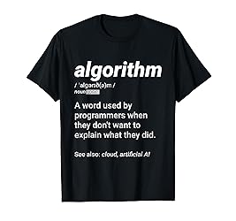 - The message on this tshirt defines 'Algorithm' as a word used by programmers when they don't want to explain what they did. see also: loud, artificial AI. t's a nice Christmas gift for people who write code in java, javascript, python, php, c, or c++. Great Christmas gift for software developers, web devs, sys admins, programmers, students, and computer scientists from various disciplines. Get it for any geek you know or just gift yourself this nerdy tee!