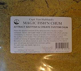 - Crafted by a top Florida West Coast live bait fishing guide, Captain Van Hubbard's Magic Fish'N Chum is a convenient, non-refrigeration-required chum. It's available in 1 lb and 4 lb resealable pouches, attracting various fish species like pilchards, greenbacks, threadfin, pinfish, and grunts, without causing storage odors.