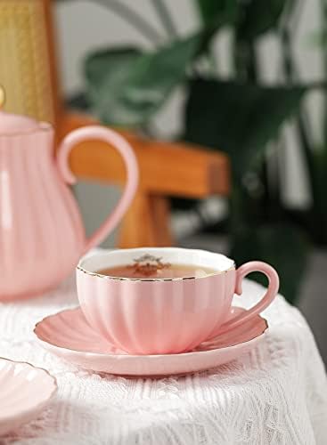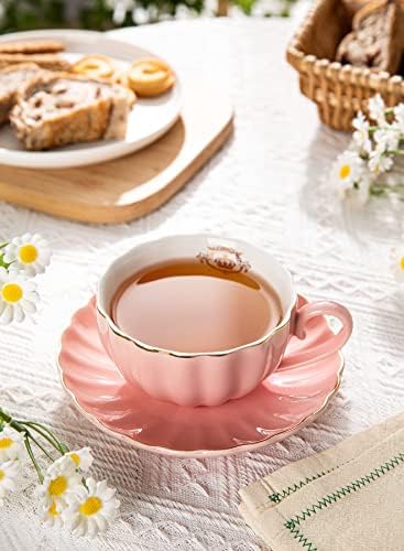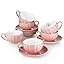 Amazingware Royal Tea Cups and Saucers, with Gold Trim and Gift Box, British Coffee Cups, Porcelain Tea Set, Set of 6 (8 oz)- Pink