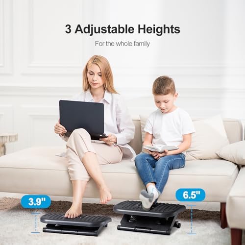 El HUANUO Foot Rest para bajo el escritorio en el trabajo es un reposapiés ajustable con una textura de masaje y rodillo que proporciona un soporte ergonómico para tus pies. Con tres posiciones de altura ajustables manualmente (3.9", 5.3", 6.5"), este taburete ergonómico permite encontrar la posición perfecta para tus necesidades. Además, su ángulo de inclinación ajustable de 0 a 30° apoya tus piernas en el ángulo preferido, y su movimiento de balanceo hacia adelante y hacia atrás fomenta la relajación de las piernas y el cuerpo. Con una textura de masaje en la parte central y rodillos que aseguran el movimiento de los pies, este reposapiés es como tener una almohadilla para los pies y un pequeño masajeador al mismo tiempo. Pre-ensamblado para uso inmediato, con pies antideslizantes para mayor estabilidad, y una construcción robusta respaldada por un increíble soporte técnico para cualquier pregunta o inquietud. ¡Ideal para hogar y oficina!