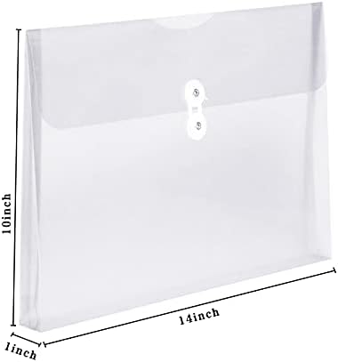 This transparent string envelope is made of high grade PVC material with a convenient twisted string buckle. It is popular by students, teachers and office worker for organizing and storing important documents and notes.Feature:Flexible, wear-resistant, waterproof, safety and practical. Quantity: 12 packs Material: environmental protective PVC Type: side-opening expandable envelopes Dimension: approx. 14x10 inch (36x26 cm) Application: school, business, families, testing, thesis defense... Suitable as a gift for employee benefits, advertising promotions, trade fairs, wedding planning, business gifts, office storage...