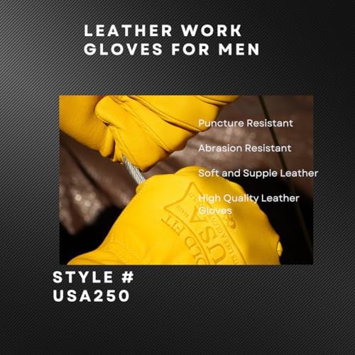 Leather Work Gloves MADE IN USA -250 Work Gloves Men Seamless Cowhide Leather Gloves Gardening Ranch, Yardwork, Construction