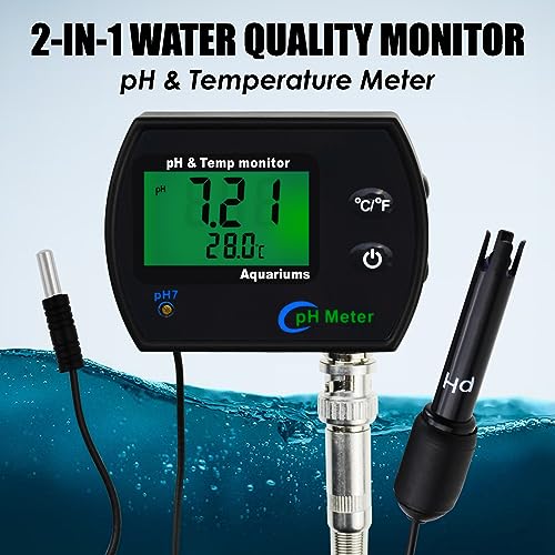 - 2-IN-1 WATER QUALITY COMBO MONITOR: PH Monitor & Temperature Meter can DisplaysTemperature & pH measurement results for continuous long-term monitoring