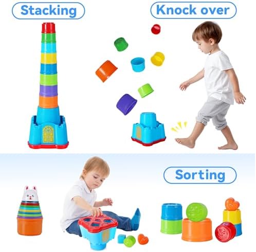 iPlay, juguetes apilables para bebés iLearn, vasos apilables para niños pequeños, bloque apilable para bebés, juego de clasificación para niños con clasificador de formas para baño de arena, regalos de cumpleaños para 12, 18 y 24 meses, niños y niñas de 1, 2 y 3 años