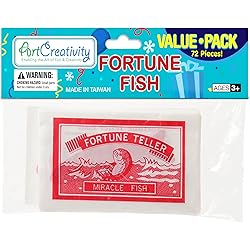 - THROWBACK FORTUNE FISH THAT EVERYONE WILL LOVE What’s your Mood? Are you head over heels for somebody or green with envy? These fortune fish know your secret! Place them in the palm of your hand and the movements of the fish reveals your mood. A moving head=jealousy, a moving head and tail=in love, curling sides=fickle, turns over=false, motionless=tired. Curls up entirely=passionate. These fun novelty toys also make great learning aids when teaching about the scientific method. Hand them out to your students, tell them to try figure out how they work using a scientific process, and makes sure all that learning gets to stick. Great for Gifting Whether you’re looking for party favors for your little one’s birthday party, party cracker toys, fun party supplies, prizes for that kids’ carnival or contest, or just a cool gift to make your cutie pie’s day, this fortune fish set is a guaranteed to be a hit! Inspire a rush of smiles and giggles without having anything to lose. Here’s why you’ll love these miracle fish : - Come in a pack of 72 to give you great value. - Measure a large 3.5” in length to enhance the fun. - Make an entertaining treat for both kids and adults. - Cool birthday party favor for boys and girls ages 3+ Click ‘Add to Cart’ now to inspire giggle-filled fun completely risk-free!