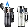 LCFun Torch 2 Pack Refillable Triple Jet Windproof Lighters - Butane Not Included (Black & Silver)