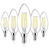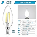 Efficient LED Bulbs: Ascher pack of 5 units E12 C35 LED filament bulb replace 60W incandescent bulb by 4W LED, save over 90% on electricity bill of lighting. Low power consumption provides over 20,000 hours lifespan, reducing re-lamp frequency Daylight White 5000K and 550 Lumens: These 4 watt led light bulbs candelabra base have a daylight white color temperature of approximately 5000K, 550 lumens. Please kindly note that is bulb is not dimmable Eye Comfort: No mercury, no UV & IR, no dazzling, flicker-free. Our 60 Watts Equivalent Edison Light Bulbs provides gentle illumination that eliminate eyes exhaustion caused by the conventional light bulbs. Wide Applications: These E12 candelabra base bulbs are ideal for chandeliers, ceiling fans, wall sconces, and pendant lights in the kitchen, living room, dining room, entryway, porch, coffee shop, mall, bar, restaurant, hotel High CRI 80 and Easy Installation: Our LED light bulbs feature a high color rendering index (CRI) of 80. This allows LED light sources to reproduce objects' colors accurately, enhancing visual realism and comfort. Standard American E12 candelabra screw base, easy to install