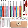 38 Paquete de Agujas de Ganchillo, 13 Piezas de 2mm(b)-10mm(n) Mangos Ergonómicos de Suaves Asas, Aguja de Ganchillo con Estuche de Almacenamiento, para Manos Artríticas, Agujas de Tejer Extra Largas