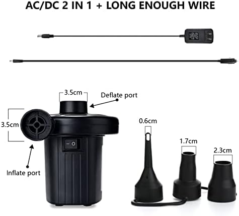 - Quick-Fill High-volume air flow & High Pressure -- The pump is equipped with strong quality motor to ensure fast inflation and deflation. Plus with its high pressure, you can inflate the air beds inflatables firm or soft as you want.