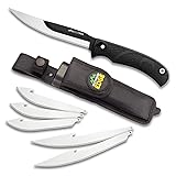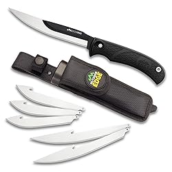 OUTDOOR EDGE RazorMax - Replaceable Fixed Blade Hunting Knife with 3.5" Drop-Point, 5" Boning/Fillet Blades, Belt Sheath and Detachable Blade Carrier (Black, 6 Blades)