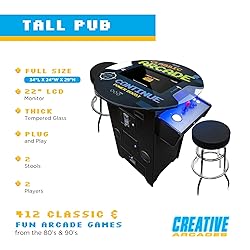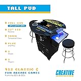 - Creative Outdoor Distributor Full Size Commercial Grade Pub Arcade Machine, 2 Player, 412 Games, 22 LCD Screen, Round Glass Top, 2 Sanwa Joysticks, 2 Stools Included