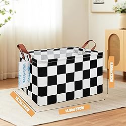 - Note:The storage basket comes with compression packing which may result in crumpled in long-distance transit. It will recover after a period of time using or put stuff in side.and also can be smoothed out by steam iron and hairdryer. 1. Made of Fabric: The material is rigid,it will stand up on its own neatly, not stay 'soft' looking if it isn't packed full of stuff, they hold their shape perfectly. 2.Folding for easy storage: The storage hamper are folding for easy storage.Fold up the bins and carry the storage basket container wherever you want ,like in your truck ,car,closet or study room. 3.Easy to care:This convenient storage basket are easy to clean,just wipe with a damp sponge or cloth. 4.Thick handles: Every storage container has two thick handles,these thick handles are designed to give you optimum tension and comfort while transporting these amazing storage bins.