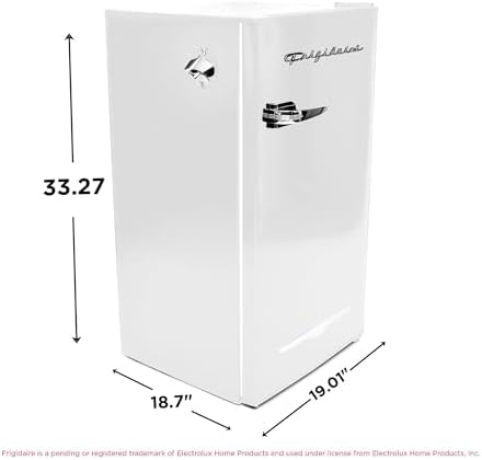 Frigidaire Retro Compact Fridge with Chiller, 3.2 cu ft Countertop Fridge with Built-In Bottle Opener, Compact Refrigerator for Office, Bedroom, Dorm Room or Cabin - 18.7"D x 19.01"W x 33.27"H (White)