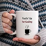 Bouncing Brick Designs Fuelin' Up for Coding Coffee Mug - Computer Programming Ceramic Cup, Gift Idea for Men/Women/Boys/Girls, Birthday/Christmas/Holiday Present for Adults/Kids, 11 Oz