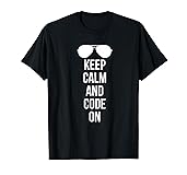- Keep Calm and Code On shirt for anyone who likes to code computers. If you know someone who loves computer coding this is a great gift for future computer coders. Coding T-shirt.