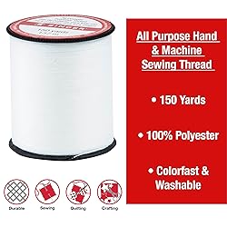100% Polyester Spool contains 150 yards of All-Purpose thread in white Use thread for hand and machine sewing 100% Polyester thread is suitable for most fabrics, especially clothing, because it is strong and flexible
