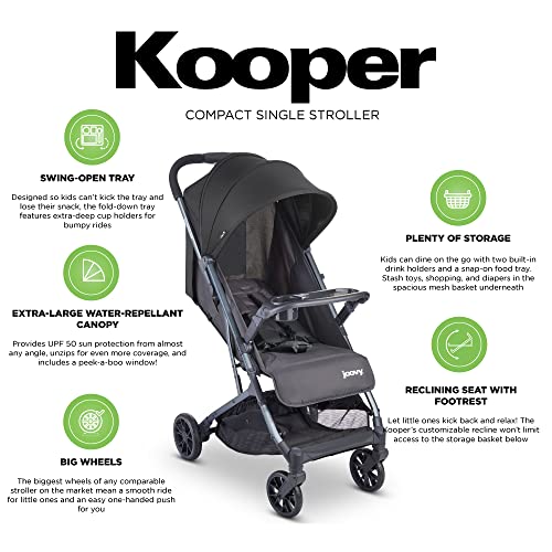 Joovy Kooper Silla de Paseo Ligera para Bebé con Bandeja Removible y Abierta, Grandes Ruedas, Asiento Reclinable con Reposapiés, Capota Extragrande Resistente y Pliegue Compacto (Hierro Forjado)