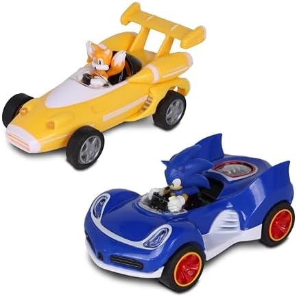 NKOK Sonic Transformed All-Stars Racing 2 Pack Pull Back Action: Tails y Sonic Hedgehog, Dos Vehículos, Leyendas de Videojuegos, Sin Pilas Necesarias, Tirar hacia atrás – Liberar – y Ver cómo va