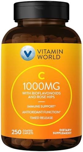 Vitamin World Vitamin C 1000 mg. Timed Release 250 Caplets, Bioflavonoids, Wild Rose HIPS, Vegetarian, Gluten Free