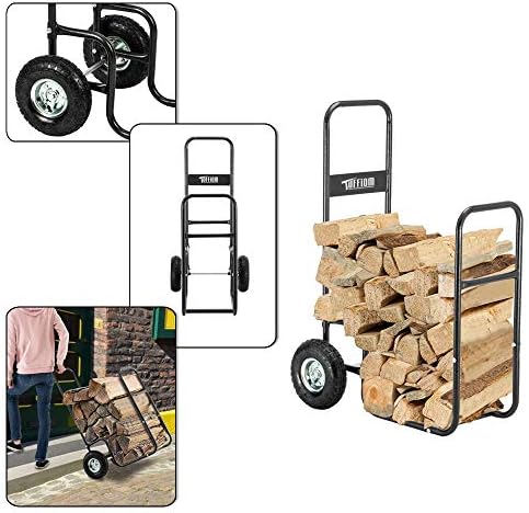 - EASY TRANSPORTING ✿ The 10 inch pneumatic tires allow you to easily transport heavy loads over rough terrain, like sand, snow, loose soil. This cart greatly eases the burden of the trek from the woodpile to the stove.