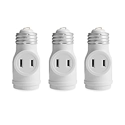 2 Outlet Light Socket to Plug Adapter, Electrical Screw in Light Bulb Socket Outlet Adapter, Lamp Holder, Dual Polarized E26 ETL, White (3PACK)