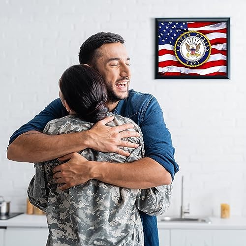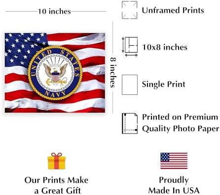 US Navy Emblem on USA Flag – 8x10” Unframed Military Wall Art Print Featuring the Official Navy Seal – Patriotic Home, Office Wall Decor, Living Room or Veteran Gift, Old Glory Waving Design