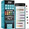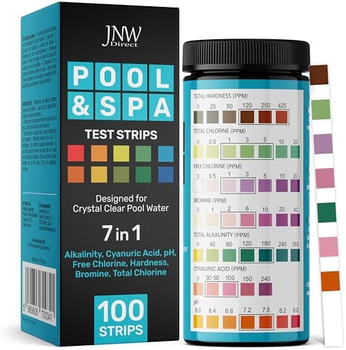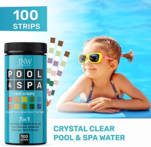 Tiras de prueba de piscina JNW 7-en-1, 100 tiras de prueba rápidas y precisas para agua de piscina, tiras de prueba para spa, tiras de prueba de cloro, bromuro, pH, alcalinidad, dureza y más - Kit de prueba de piscina