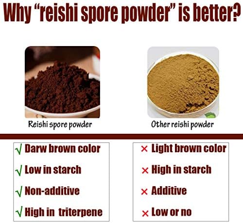 7oz (200g) by Resealable Bag, Improving sleep quality and immunity THE IMPORTANT THING When you intend to purchase Reishi Powder, you should first know the difference between Reishi extract powder and Reishi spore powder. Spores (Powder) are seeds that are produced and released by the Reishi(Lingzhi) Plant or Fruit Body once it reaches maturity, it is the essence of Reishi. The spore is structured of two layers of chitin fibrous shell, and it's not water soluble, so you can hardly absorb the nutrients inside, so the spores must be broken. In fact, it takes around 1000kg of Reishi Mushroom to make 1- 3kg of Reishi Spores, so Reishi spore powder is a good super foods for you. How to distinguish the extract Reishi powder from the Reishi spore powder? 1. Extract powder tastes slightly bitter and spore powder tastes faintly of mushroom 2. The extract powder is beige in color, and the spore powder is dark brown in color 3. The extract powder is relatively dry, and the spore powder is relatively delicate due to the presence of spore oil in the treatment of shell-broken. Why is it necessary to break or split open the Spores? The Ganoderma spores are surrounded by a geometric fiber wall (chitin), which is difficult to be absorbed by the human body. We make the spores of Ganoderma lucidum with wall-breaking to fully absorb the essence of Ganoderma lucidum. It was called "wall-broken spore powder".