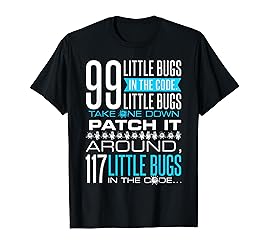 Funny Programmer T Shirt 99 Little Bugs Coding Programming This 99 Little Bugs Coding t-shirt makes a great gift for anyone who works in the Information Technology field or a Software Engineer, Tester, Quality Assurance, Technical Consultant, Developer, Programmer, Coder, computer geek or nerd. Lightweight, Classic fit, Double-needle sleeve and bottom hem