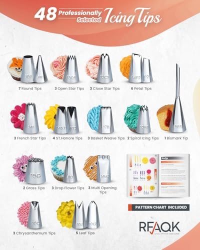 • GUÍA DEL USUARIO EN EBOOK PARA PRINCIPIANTES: La guía del usuario en eBook enviada por correo electrónico incluye 3 recetas de pasteles, Método de horneado de pasteles, nivelación y glaseado de pasteles. 3 recetas de glaseado, Guía paso a paso para usar puntas de glaseado, Usos de diferentes tipos de puntas CUSTOMER SATISFACTION es lo que nos impulsa a proporcionar los productos de la más alta calidad. Si en cualquier momento no estás completamente satisfecho con tu compra, no dudes en devolverlo para obtener un reembolso completo y rápido