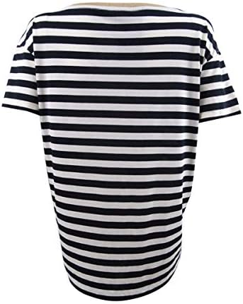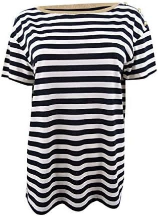 Lauren Ralph Lauren Women's Striped Button-Shoulder T-Shirt (M, Black)