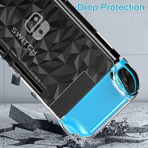 Funda Compatible con Nintendo Switch con Película Protectora, Funda Transparente para Nintendo Switch con Película Protectora y Funda de Sujeción, Absorción de Choques y Antiarañazos