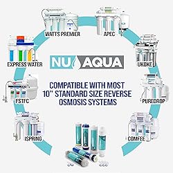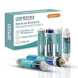 PREMIUM QUALITY REVERSE OSMOSIS FILTER CARTRIDGES: These reverse osmosis water filter replacement have gone through rigorous development and testing in our U.S. lab to provide consistent great tasting, clean and healthy water on demand while maintaining superior performance. If you're not satisfied with your filters in 120 days send them back. HEALTHIER WATER WITH ALKALINE & MINERALIZATION: Our premium 6 stage alkaline filter increases natural minerals (such as calcium, iron, zinc, magnesium, copper & selenium) and increases antioxidants while oxygenating your water. NU Aqua utilizes a HydraCoil tech manufacturing process for up to 50% cleaner water than comparable ro systems. This allows the ro water filter system to provide up to a 99% rejection rate of 1000+ pollutants (such as arsenic, chlorine, fluoride & lead) UNIVERSAL RO FILTER SYSTEM COMPATIBILITY: Fits most standard undersink reverse osmosis water filter systems that use 10” x 2.5” filter sizes; including RO5MX, ROES-100, ROES-50, RCC100P, RO5e, FLTSET0510Q, -MAX90, F5-75, Puroflo ERO 5, RFK-5, CMP10-F, Culligan 1000R, 1000R-D, 750R-D, IC-1000, RV-1000, SY-1000, & Simpure SP4-RO75. For most under sink RO systems, this is the most common industry standard filter size INCREASES RO FILTRATION SYSTEM LIFESPAN: High quality filters not only improve the water produced by your reverse osmosis undersink system it extends the longevity of the it's components. Effectively removing pollutants early in the filtration process protects fittings, housings and valves so that your system can keep running with little to no maintenance REVERSE OSMOSIS REPLACEMENT FILTERS: Our 6 Stage Replacement Water Filter + Alkaline Set includes a 100 GPD Membrane Filter (0.001 Micron), Polypropylene Sediment Filter (1 Micron), GAC Granular Activated Carbon Filter (1 Micron), Carbon Block Filter (5 Micron), & a Carbon Polishing Filter (1 Micron). Includes 10” Alkaline filter alongside an additional replacement parts pack (t-connect & elbow fittings)
