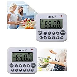 - 2 Pack XREXS Digital Kitchen Timer Magnetic Countdown Up Cooking Timer Clock with Magnet Back and Clip, Loud Alarm, Large Display Minutes and Seconds Directly Input-White (4 Battery Included) Digital Kitchen Timers XREXS Large Display Countdown Timer with Alarm Slow cooking, slow roasting or barbequing can even be timed with this handy device. The timer can be set for up to 99 minutes 99 second. Product Features Countdown timer large display- ★Easy to read clear digits digital display shows minutes and seconds by LCD display sreen Loud kitchen timer- ★It's not necessary to keep your eye on the clock when you have the XREXS Direct Entry Kitchen Cooking Timer Alarm, cooking timer with alarm can be heard in another part of the house ★The timer keeps track of how long your dish has been cooking or how long it still needs to cook with its count up or down features. Set the timer for your roast and go about the rest of your chores, the long and loud alarm will alert you when the meal is real to be served. Safe kitchen timer- Made of food safe ABS plastic, the plastic construction makes it a great addition to any kitchen. Magnetic cooking timer- ★The timer comes with a magnet, along with a pocket clip,sturdy little plastic fold-out stand and loop for mounting on the back. ★You can open to stand it on a shelf.Plus the magnet on the back is strong enough to hold it up on a fridge/oven. ★As a countdown 90 minute and second timer, this can also act as a stopwatch counting up from zero. Perfect timer for homework, exercise, gym workout, kitchen cooking (eg. egg timer), sports, games and classroom timer activities. ★The Direct Entry Timer is a great device by XREXS that has all the features you look for in a timer, and some extras as well. Product Specifiction: Timer size: 3.2x 2.9x 0.8 inches. LCD display: 2.1x 0.75 inches Color: White Weight: 0.2kg Material: ABS plastic Power: 2 AAA batteries(included) Package Includes: 2x Digital Timer 4x AAA batteries