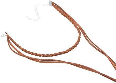 Doubnine Choker Multilayer Y Lariat Necklace Suede Braided Boho Jewelry for Women (brown)