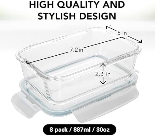 - 16 Piece Set - Most unique set. bpa/ pvc free, non-toxic. includes 8 - 30 oz glass food storage containers with 8 bpa free plastic lids, removable silicone seal for easy cleaning. Stain and odor resistant. size: 7.2(inch) x 5.0(inch) x 2.3(inch). These glass containers are perfect for storing leftovers or planning ahead with your weekly meal prep.